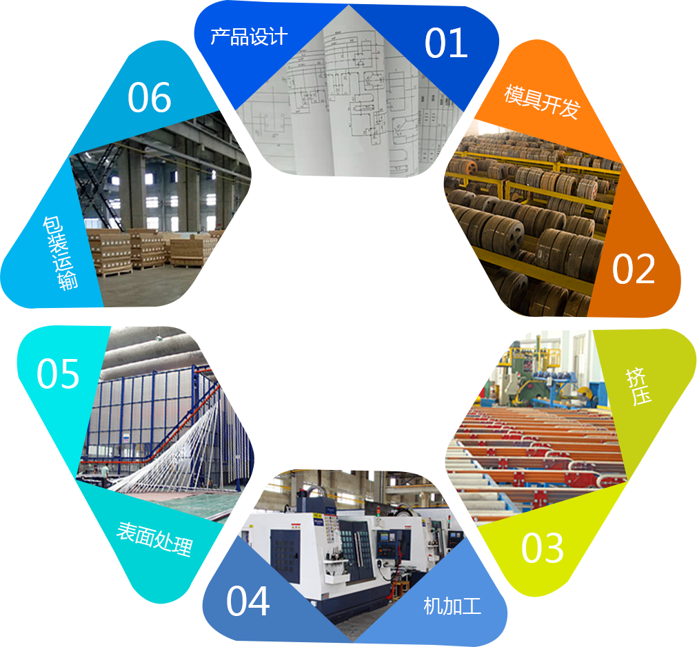 主要供應:汽車電池托盤、電池包端板與散熱口琴管、天窗與行李架,LED燈具外殼散熱型材、電機外殼、電子散熱器、機械設備、工業自動化流水線型材、太陽能邊框與支架、建筑裝飾、軌道交通、醫療器械、電力電氣系統、3C電子,戶外家具及特殊工業用鋁型材。表面處理:粉末噴涂、氟碳噴涂、木紋轉印、3D刨花木紋、4D仿古木紋、5D耐腐木紋、大氧化與小氧化(銀白,古銅,香檳,紫銅,青銅,金色,黑色氧化;酸砂,磨砂,噴砂氧化、拋光、拉絲、光亮氧化)。精加工:精切、鉆、沖、銑、折彎、焊接、CNC、鉚接、彎曲等工藝。